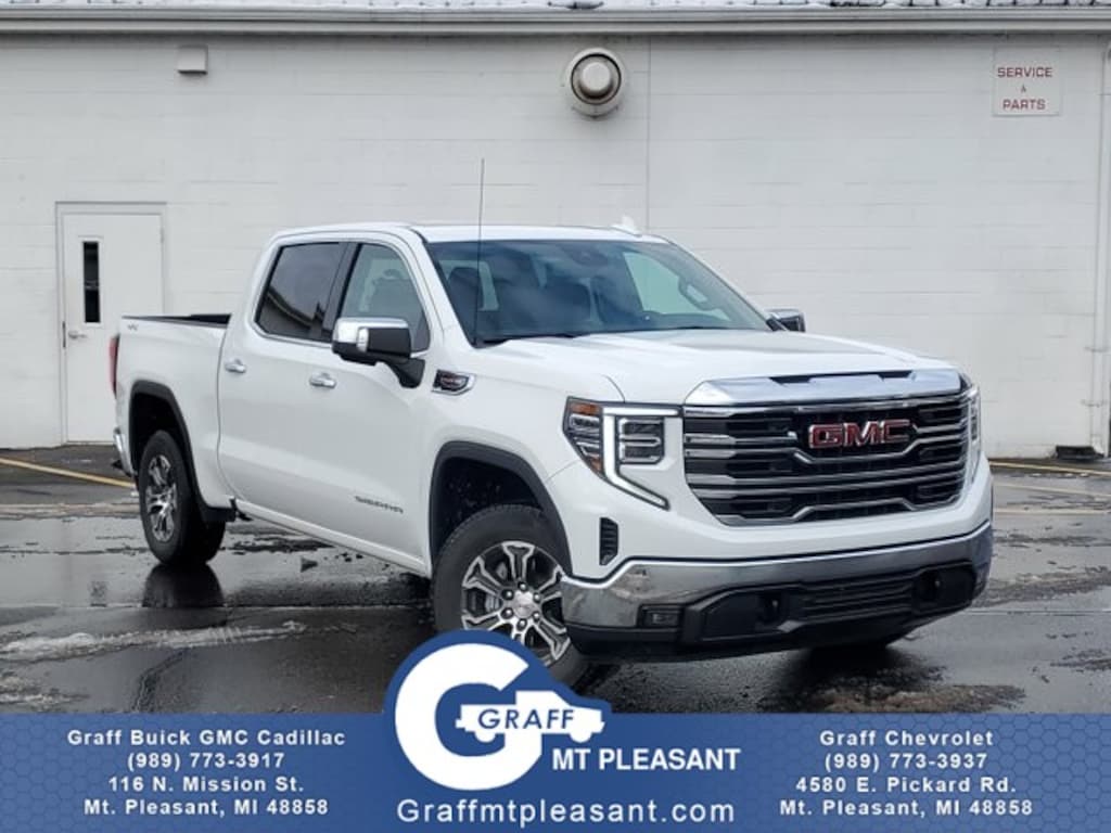 Here at Graff of Mt. Pleasant, we pride ourselves on providing the best service possible and leaving our customers with a smile. Whether the vehicles are on the lot or still in transit, feel free to call us or stop in to the dealership and we will be happy to answer any questions you may have. We have a wide variety of GM vehicles available. Check out our inventory and contact us to bring home your perfect vehicle today! You appreciate the finer things in life, the vehicle you drive should not be the exception. Style, performance, sophistication is in a class of its own with this stunning GMC Sierra 1500 SLT. Equipped with 4WD, this GMC Sierra 1500 SLT gives you added confidence to tackle the surface of any path you take. The GMC Sierra 1500 SLT will provide you with everything you have always wanted in a car -- Quality, Reliability, and Character. The look is unmistakably GMC, the smooth contours and cutting-edge technology of this GMC Sierra 1500 SLT will definitely turn heads.