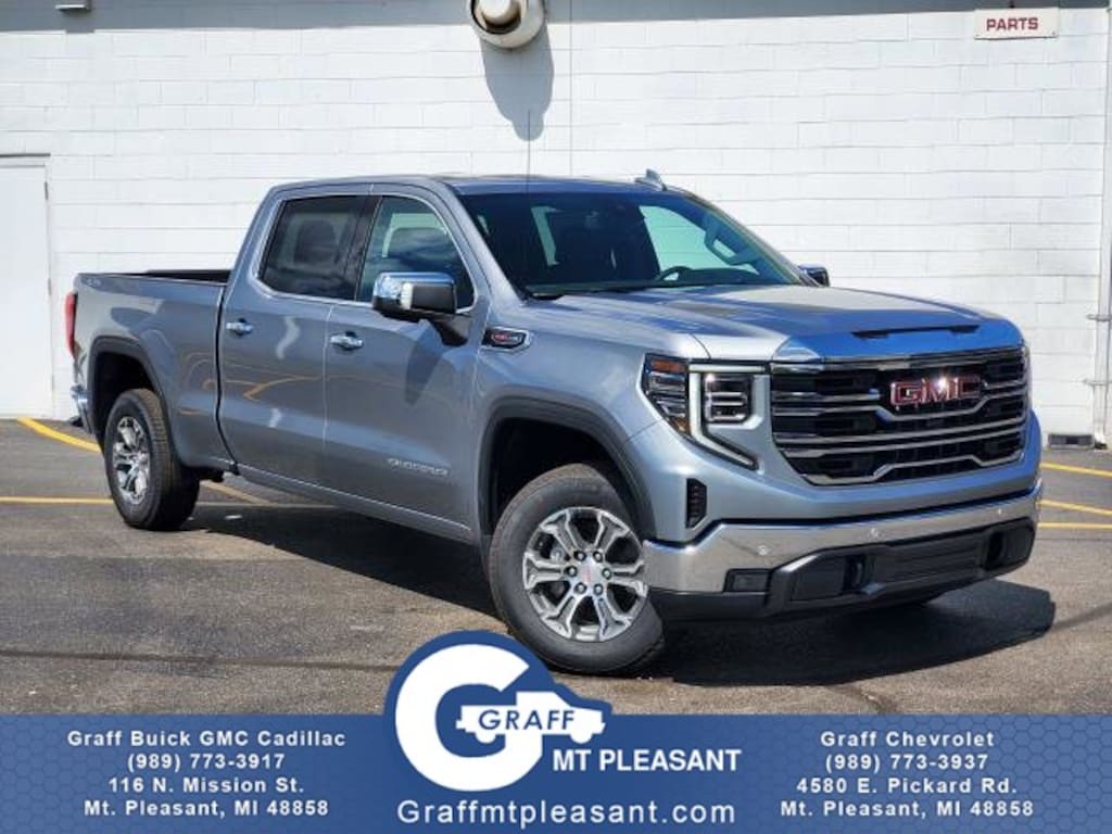 Here at Graff of Mt. Pleasant, we pride ourselves on providing the best service possible and leaving our customers with a smile. Whether the vehicles are on the lot or still in transit, feel free to call us or stop in to the dealership and we will be happy to answer any questions you may have. We have a wide variety of GM vehicles available. Check out our inventory and contact us to bring home your perfect vehicle today! Today's luxury vehicle is not just about opulence. It's about a perfect balance of performance, comfort and attention to detail. This 2026 GMC Sierra 1500 SLT is the perfect example of the modern luxury. Take home this GMC Sierra 1500 SLT, and you will have the power of 4WD. It's a great feature when you need to drive over tricky terrain or through inclement weather. The GMC Sierra 1500 SLT will provide you with everything you have always wanted in a car -- Quality, Reliability, and Character. There is no reason why you shouldn't buy this GMC Sierra 1500 SLT. It is incomparable for the price and quality.