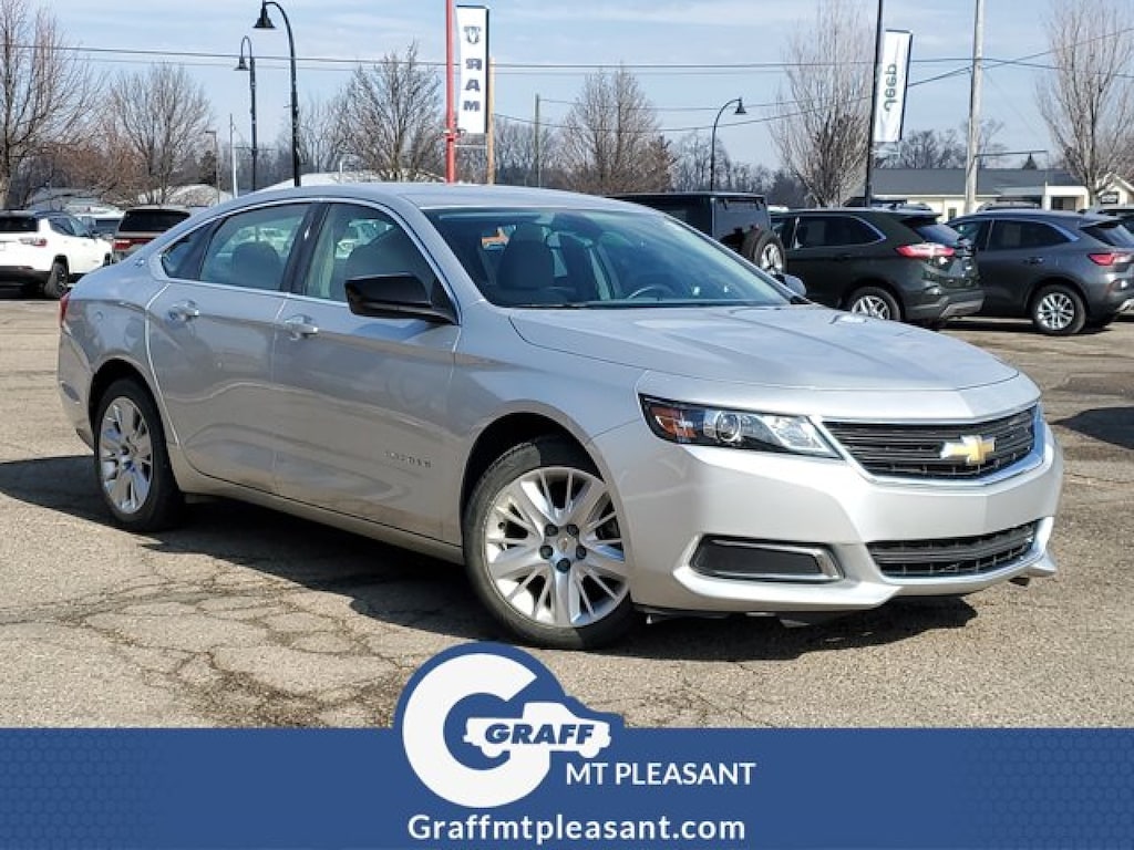 Graff CDJR Fiat Of Mt Pleasant has a wide selection of exceptional pre-owned vehicles to choose from, including this 2014 Chevrolet Impala. When it comes to high fuel economy, plenty of versatility and a great looks, this ChevroletImpala LS cannot be beat. This Chevrolet Impala's superior fuel-efficiency is proof that not all vehicles are created equal. In addition to being well-cared for, this Chevrolet Impala has very low mileage making it a rare find. The look is unmistakably Chevrolet, the smooth contours and cutting-edge technology of this Chevrolet Impala LS will definitely turn heads. More information about the 2014 Chevrolet Impala: The Impala is a large sedan competing in the near-luxury segment. Starting at under $28,000 the Impala undercuts the price of many entry level luxury cars while still offering plenty of luxury features. It also includes substantially more room than many buyers might be expecting, especially considering a price point similar to many smaller, midsized cars. A major emphasis has been placed on build quality and interior refinement improving comfort while reducing noise vibration and harshness. A hybrid model goes on sale later in the year, offering up to 35 mpg on the highway. Strengths of this model include Roomy, comfortable, attractive styling, lots of safety features