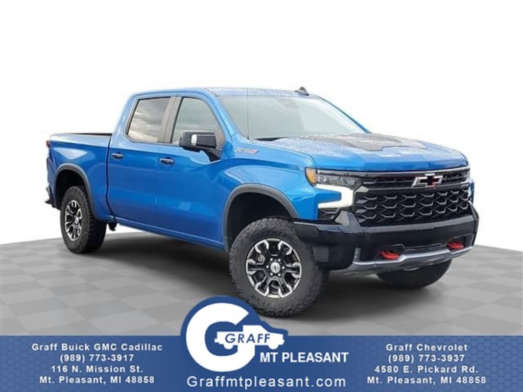 Graff Mt. Pleasant sets very high standards for our Pre-Owned Inventory. All of our vehicles go through a detailed inspection with our GM Certified Mechanics, so you can have peace of mind knowing you have a safe vehicle! We take pride in making sure we price our vehicles very aggressively within the market. We want to make sure we exceed all of our customers expectations and give them the best experience possible. As much as we attempt to keep all of our inventory up to date, we cannot guarantee that this exact vehicle is still available for sale. We look forward to earning your business! This Chevrolet Silverado 1500 ZR2 is for the discerning driver who demands the utmost of his vehicle. Taking the road less traveled has never been more fun than with this 4WD. With improved performance, mileage and acceleration, this 2022 4WD Chevrolet Silverado 1500 ZR2 is king of the off-road. With less than 18,948mi on this Chevrolet Silverado 1500, you'll appreciate the practically showroom newness of this vehicle. Marked by excellent quality and features with unmistakable refined leather interior that added value and class to the Chevrolet Silverado 1500 ZR2.